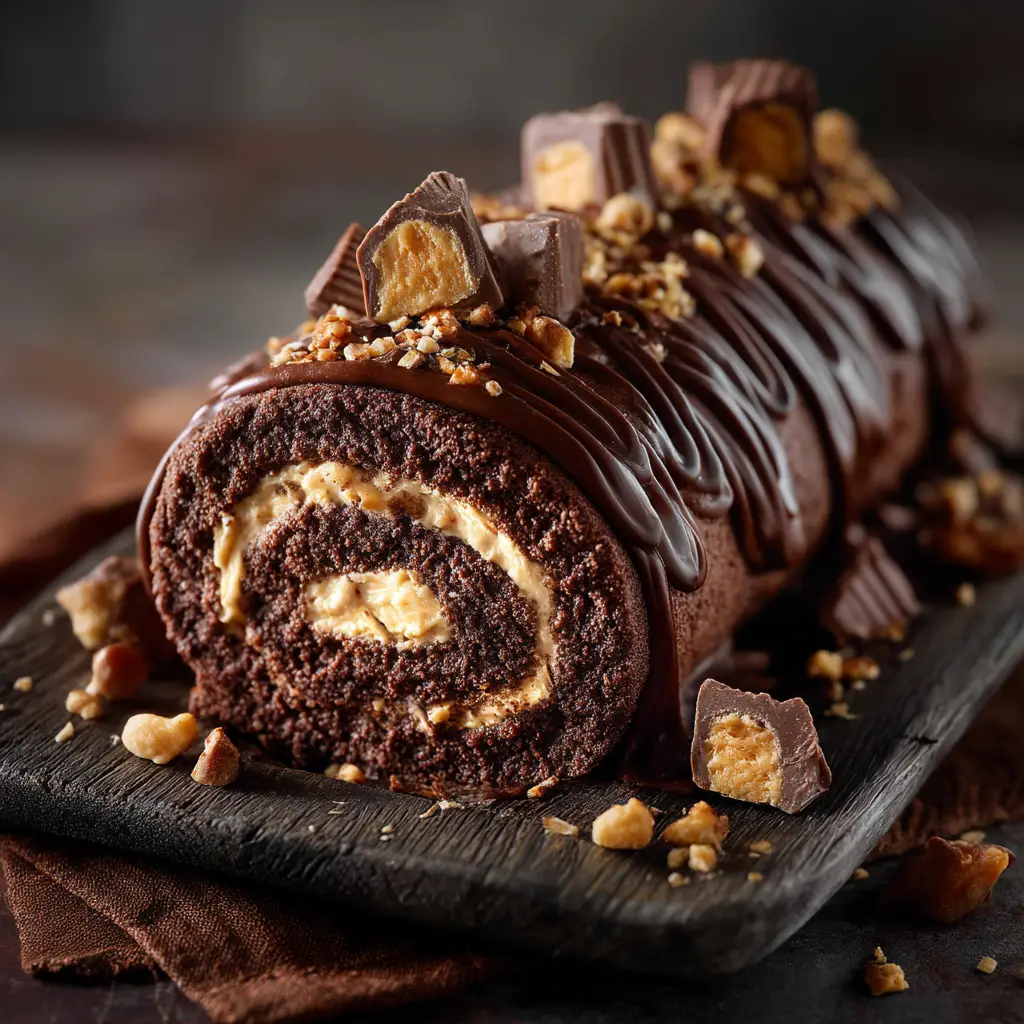 An easy, foolproof recipe for a decadent Chocolate Peanut Butter Cake Roll. This guide ensures a perfect, crack-free chocolate sponge filled with creamy peanut butter frosting and topped with a rich ganache.
