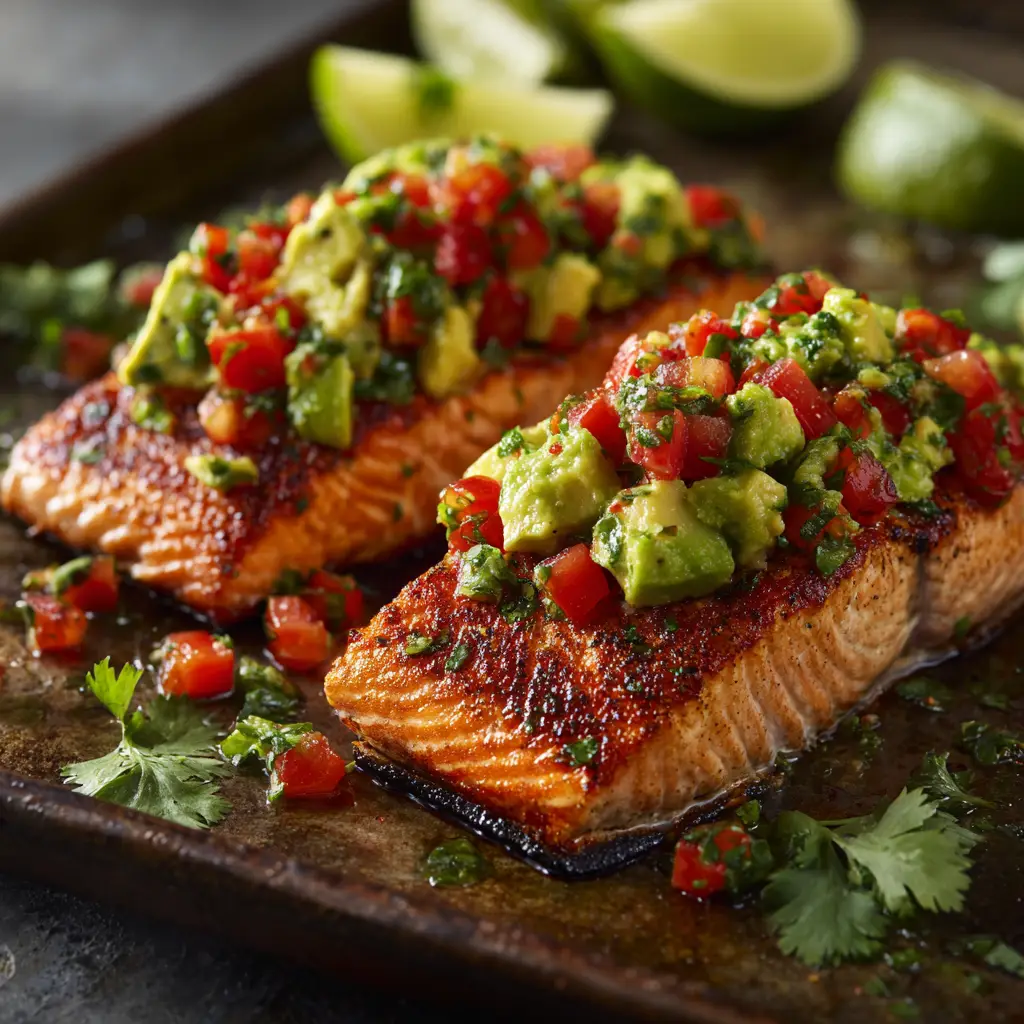 This zesty salmon pairs beautifully with a variety of sides. For a complete meal, consider serving it with a simple side of fluffy Spanish rice to soak up the delicious juices. It’s also fantastic with roasted asparagus, a fresh quinoa salad, or alongside one of these delicious shrimp and avocado bowls for a surf-and-surf combo. For another take on delicious salmon, you might also love this Lemon Dill Baked Salmon.