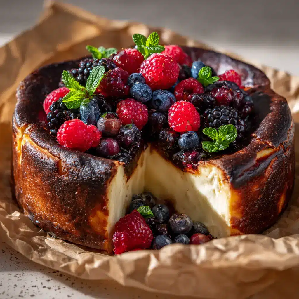 Welcome to the recipe that will redefine your dessert standards: the Citrus Berry Burnt Cheesecake. This isn’t your ordinary cheesecake. It’s a stunning, crustless dessert that boasts a deeply caramelized, “burnt” top, which gives way to an unbelievably creamy, light, and citrus-infused center. Studded with a vibrant berry swirl, this cheesecake is a masterclass in texture and flavor contrast. Forget everything you know about dense, heavy cheesecakes; this Basque-style creation is effortlessly elegant and surprisingly simple to make.