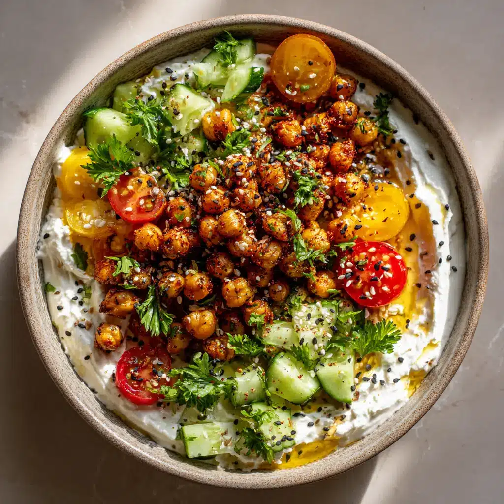 Welcome to the recipe that will redefine your lunch routine. This Cottage Cheese Chickpea Salad is the perfect fusion of creamy, crunchy, and fresh, delivering a high-protein meal that’s as satisfying as it is visually stunning. Forget boring salads; this is a textural masterpiece, directly inspired by the vision of a rustic ceramic bowl filled with wholesome goodness, where thick, textured curds of cottage cheese form the perfect base for spiced, golden-roasted chickpeas and vibrant vegetables.