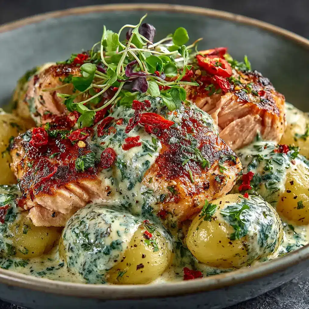 This Creamy Salmon Gnocchi is an easy, elegant one-pan meal ready in 30 minutes. Featuring tender salmon, pillowy gnocchi, and a luscious garlic cream sauce, it's the perfect weeknight dinner that tastes like a restaurant-quality dish.