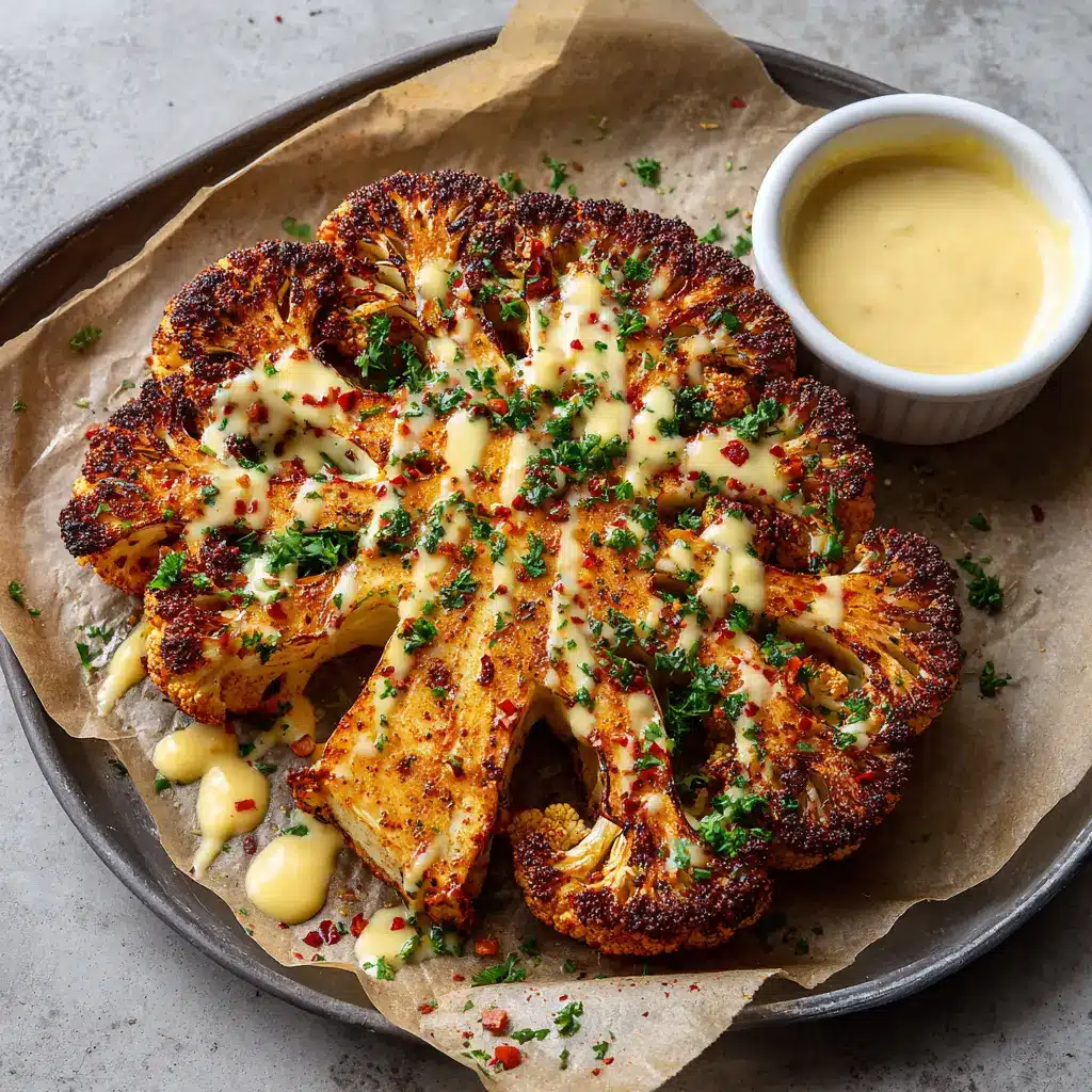 Crispy Baked Cauliflower Steaks with Creamy Garlic Sauce