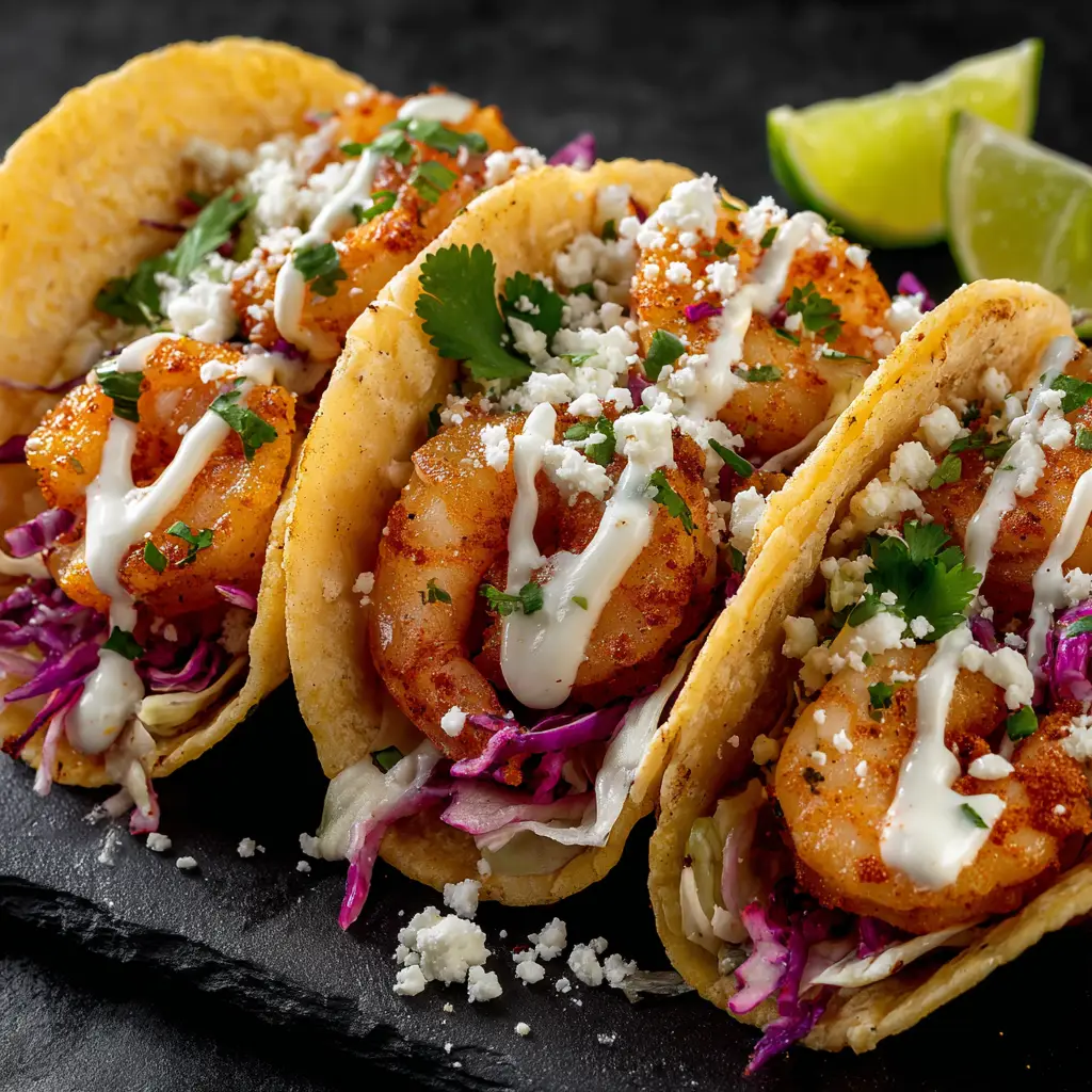 - Assemble: Warm tortillas. Fill each with a spoonful of slaw, 3-4 crispy shrimp, and your favorite toppings like cotija cheese, avocado, and fresh cilantro. Serve immediately with lime wedges.