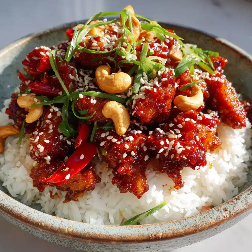 Every bite delivers a satisfying crunch, followed by a rush of flavor—a deep, vibrant crimson sauce clinging to the chicken, studded with roasted cashews, charred red bell peppers, and thinly sliced onions. This guide will walk you through achieving that signature texture and taste, transforming simple ingredients into a show-stopping meal served over fluffy jasmine rice.